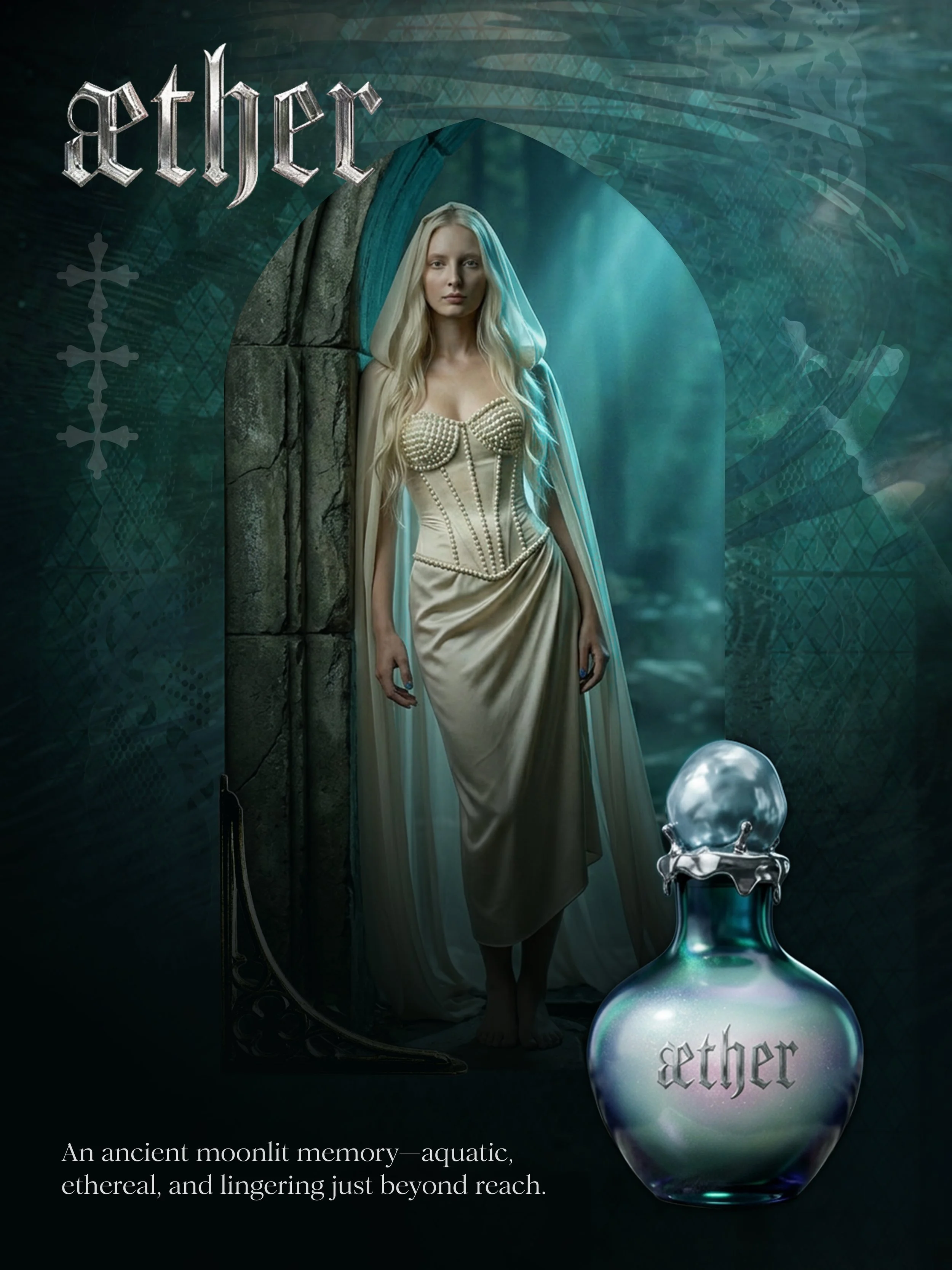 AETHER was not driven by a commercial brief, but by feeling—something ethereal, sacred, and quietly seductive. The challenge was to define a visual language that could hold this tension: between visibility and obscurity, material and immaterial, human and divine.