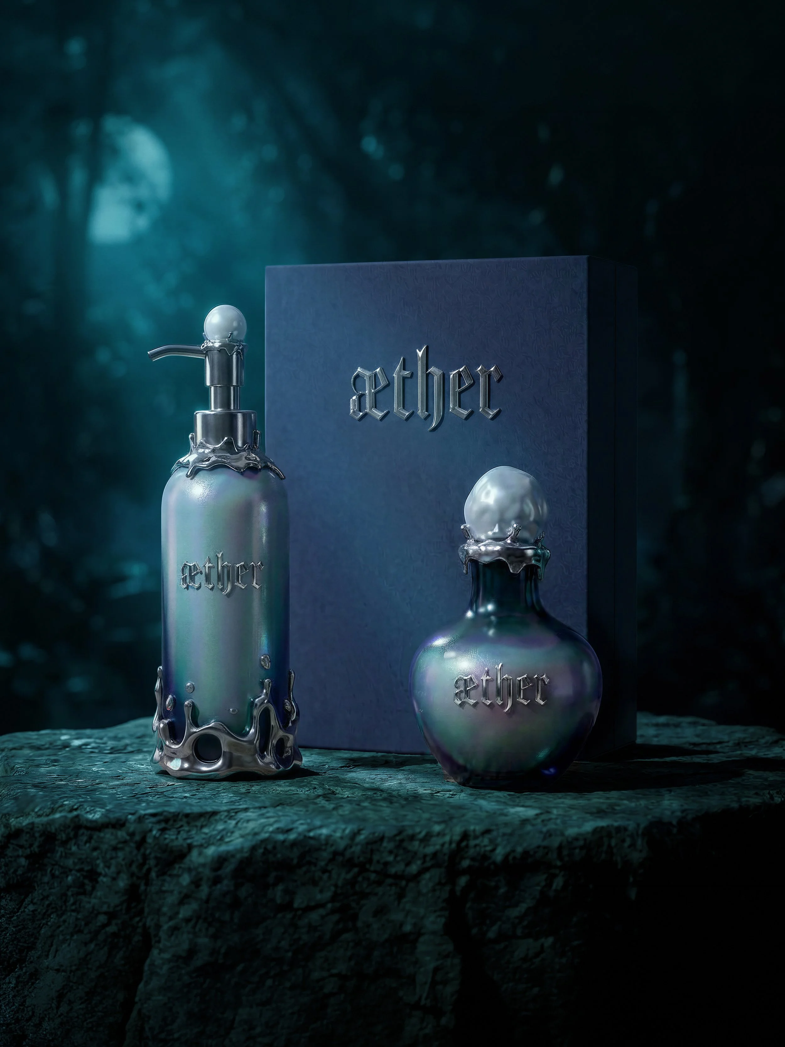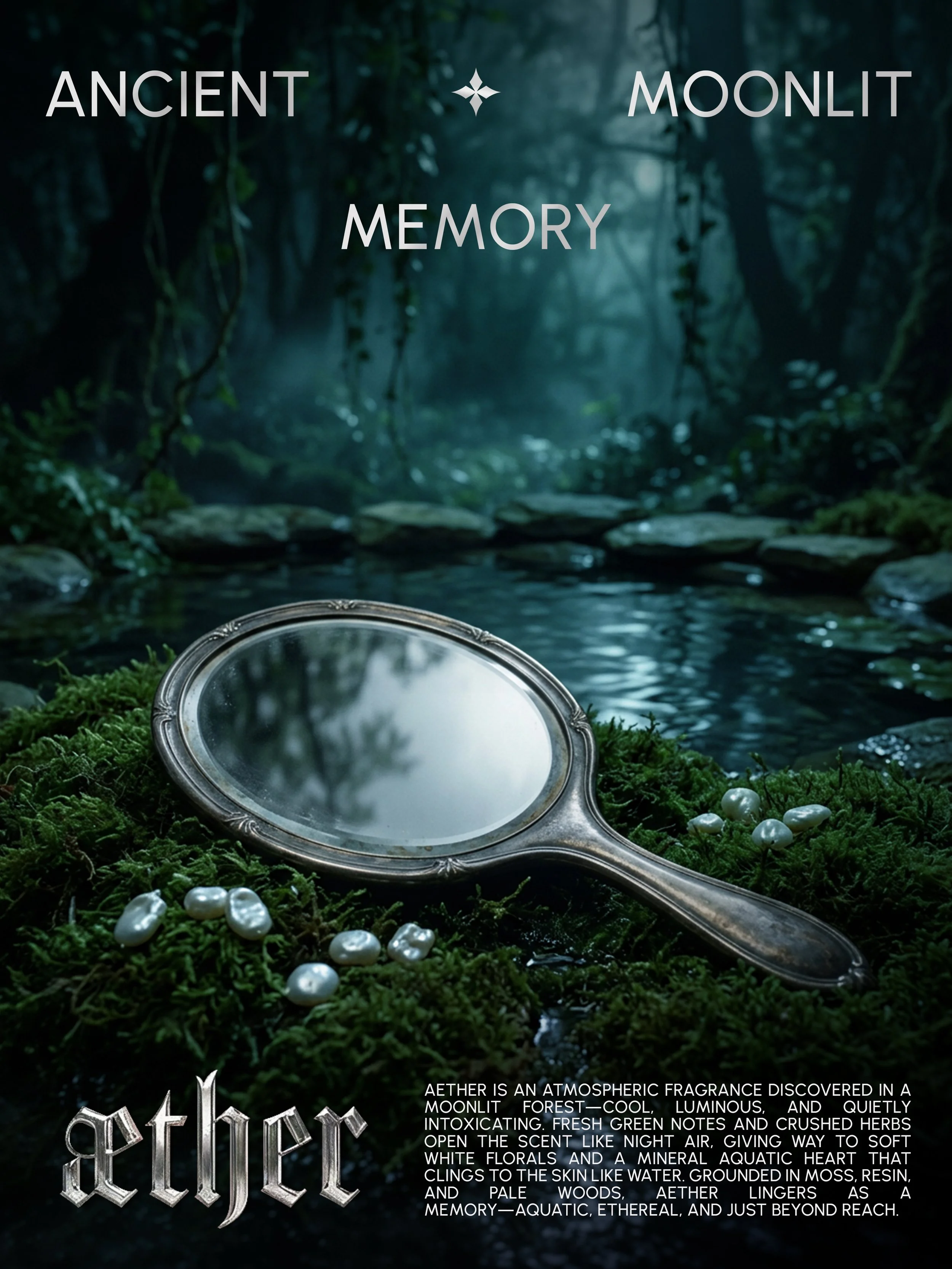 AETHER is a conceptual fragrance brand and world-building exercise—developed as both a creative exploration and a proof of capability in integrating AI-driven workflows into the design process.